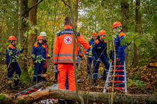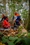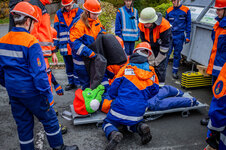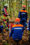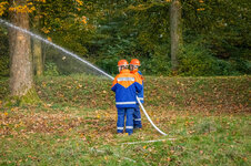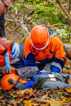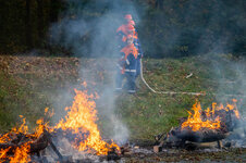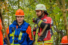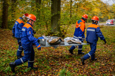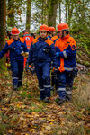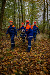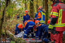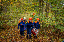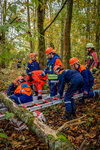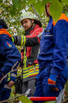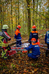 Dann standen wieder Einsätze auf dem Programm. In zwei Gruppen galt es diese abzuarbeiten: Rettung aus schwierigem Gelände eines verunfallten Waldarbeiters, unterm Baum eingeklemmt, notwendigen Transport mittels Trage im unwegsamen Gelände und Autobrand am Bauhof mit Schaumangriff. Letzteres war zugleich Übung für die anstehende Jugendflamme Stufe 3. „Bei allen Übungen agieren die Jugendlichen, als Angriffs-, Wasser- oder Schlauchtrupp wie auch als Gruppenführer, nur die Positionen Fahrer und Maschinist werden von Erwachsenen besetzt“, erklärt Jugendwart Jörg Haase, dem viele Aktive zur Seite stehen. „Wir haben die Aufgaben auf mehrere Schultern verteilt und für fast jeden Einsatz hat ein anderer die Leitung.“