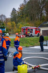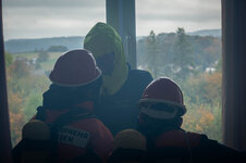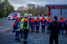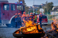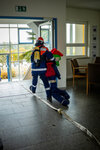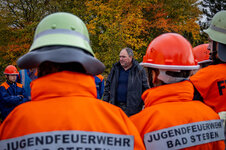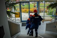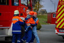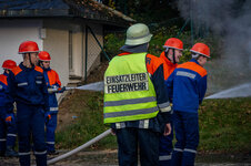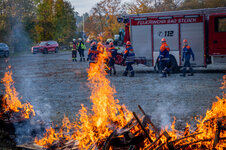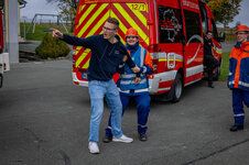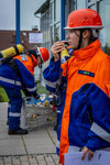 Nach dem Mittagessen fand die große Abschlussübung an der Alexander-von-Humboldt-Grundschule statt. Einige Zaungäste hatten sich eingefunden, darunter Schulleiter Gerhard Fischer und Hausmeister Christian Köhn. Auch einige Schulkinder waren zugegen und gemeinsam beobachteten sie das Szenario von Menschenrettung und Brandbekämpfung. Auch Kreisbrandinspektor Rolf Hornfischer machte sich ein Bild vom Wissen und Können der Nachwuchsbrandschützer, denen die Aktiven zur Seite standen und erklärten, wie beispielsweise die Überwachung der Atemschutzgeräteträger. „Die Jugendlichen, die als Atemschutzgeräteträger agieren haben natürlich Jugendgeräte“, versicherte der Jugendwart, der sich für jedwede Unterstützung rund um den BF-Tag bedankte, ob nun bei der Verköstigung, der Nachtwache, der Stationsausbildung wie auch den verschiedenen Übungen.