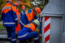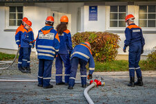 Der Morgen begann mit einer Vermisstensuche gleich einer „Schnitzeljagd“ durch Bad Steben. Anhand von Koordinaten sollten die verschiedenen Teams sich zum Frühstück im Feuerwehrhaus einfinden. Nach der Stärkung dann Stationenarbeit mit einfacher Technischer Hilfeleistung, wasserführender Armaturenkunde und Atemschutz.