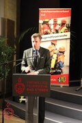 Landrat Oliver Bär betonte die besondere Bedeutung der Bad Stebener Wehr für die Region und wusste um den Drehleiterstandort mit Einsatz auch außerhalb des Landkreises wie auch des Fahrzeugstandortes der Unterstützungsgruppe Örtliche Einsatzleitung (UG-ÖEL) des Kreisfeuerwehrverbandes Hof. „Ihr seid 365 Tage einsatzbereit und das ist keine Selbstverständlichkeit“, betonte der Landkreischef und dankte dafür auch im Namen der Bürgerschaft. „Wir sind stolz und dankbar auf unsere ehrenamtlichen Einsatzkräfte.“ Bürgermeister Bert Horn bilanzierte, dass die Brandschützer bereit sind, dahin zu rennen, wo andere weglaufen. „Ihr leistet unverzichtbaren Dienst und dies mit Mut, Wissen und Umsicht.“ Horn betonte, dass es der Marktgemeinde trotz klammer Kassen immer gelungen sei, die Feuerwehr dem technischen Stand entsprechend auszustatten, neue Gerätschaften und Fahrzeuge anzuschaffen. „Ein neues Feuerwehrgerätehaus mit Gemeinschaftsräumen steht im Fokus“, versicherte der Bürgermeister und auch, dass die Gemeinde nicht nur ein offenes Ohr für die Belange der Feuerwehr habe, sondern auch einen offenen Geldbeutel. Kreisbrandrat Marco Kolbinger dankte für den Dienst am nächsten und die damit verbundene geopferte Freizeit. „Ihr seid 365 Tage, 24 Stunden für die Mitbürgerinnen und Mitbürger da, leistetet aufopferungsvollen Dienst“, bilanzierte Kolbinger und hofft, dass die Jugend das uneigennützige Erbe der Väter fortsetzen werde. Spielbankdirektor Udo Braunersreuther, Kurdirektor Ottmar Lang und der kaufmännische Direktor Donat Sammer der Klinikleitung der Reha-Kliniken dankten für die Einsatzbereitschaft und das Engagement jedes Einzelnen, auch für den uneigennützigen Dienst, der Sicherheit gebe, sie lobten die hervorragende Jugendarbeit in der Feuerwehr „Stemmer Löschlöwen“ und der Jugendgruppe. Zudem fand die Zusammenarbeit lobende Worte. Sammer lud die Kinder und Jugendlichen zum Minigolf ein. „Wir stellen euch den Platz gerne zur Verfügung.“ Danny Weinrich von der Lichtenberger Wehr gratulierte im Namen aller Feuerwehren des Kreisbrandmeisterbereiches. Pfarrer Dirk Grießbach legte den alten Leitspruch der Feuerwehren „Gott zur Ehr, dem nächsten zur Wehr“ zugrunde, zollte den Einsatzkräften Respekt und dankte für die Treue und Verantwortungsbereitschaft.