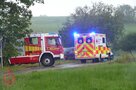 Mit der Alarmmeldung „Brand B4 - Brand eines Aussiedlerhofs in Schleeknock“ wurden wir am vergangenen Sonntagabend alarmiert. Aufgrund der Brisanz rückte innerhalb kurzer Zeit der komplette Fuhrpark bestehend aus Mehrzweckfahrzeug, dem Löschgruppenfahrzeug, der Drehleiter, dem Tanklöschfahrzeug und dem Gerätewagen-Logistik in Richtung Carlsgrün aus.