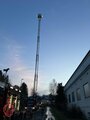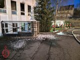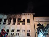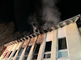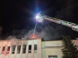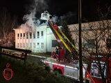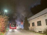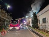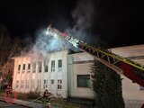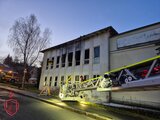 Die Meldung bestätigte sich, bei Eintreffen an der Firma schlugen die Flammen bereits aus den Fenstern. Das Feuer wurde durch zügige Löschmaßnahmen eingedämmt, sodass es sich nicht auf weitere Stockwerke ausbreiten konnte. Auch die Brandwand in Richtung der Fertigungshalle wurde durch ein schnelles Eingreifen des Wenderohres unserer Drehleiter geschützt. So konnten die Flammen nicht auf die Fertigungshalle übergreifen. Gleichzeitig gingen mehrere Trupps unter Atemschutz in den Innenbereich vor und löschten das Feuer.