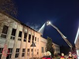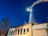 Die weiteren Löschmaßnahmen gestalteten sich schwierig und langwierig. Das Feuer war aus, aber in den Zwischendecken befanden sich weiterhin Glutnester. Da es für die Atemschutztrupps von innen unmöglich war, die hohen Decken zu öffnen musste mittels Rettungssäge und Drehleiter das Dach von oben geöffnet werden. Insgesamt 4 Trupps unter Atemschutz öffneten über unsere Drehleiter das Dach. So konnten Stück für Stück sämtliche Glutnester gefunden werden.
