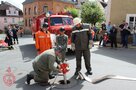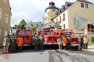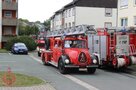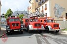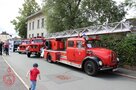Am zweiten Festtag dann der Oldtimerfrühschoppen mit Oldtimerfahrzeugschau, die viele Interessierte anlockte, zig Kameras klicken ließ. Die weiteste Oldtimeranreise, sogar mit regulärer Besetzung der Einsatzkräfte, legte das Fahrzeug vom Markt Mainleus zurück – ein Löschgruppenfahrzeug 15 mit dem Namen „Susi“ in der Farbe Grün, Baujahr 1942 aus Holz gebaut und mit Blech bezogen. Die Oldtimerfreunde Hochfranken präsentierten ein Trockentanklöschfahrzeug, Baujahr 1961, auch als „Opa Karl“ bekannt, zurückzuführen auf den Branddirektor der Münchner Berufsfeuerwehr Karl Seegerer, der diese von 1965 bis 1988 leitete. Ein Unikat in der Reihe der Oldtimer ein Versorgungs-Lkw der Feuerwehr Kempten, aber mittlerweile im Privatbesitz. Auch das Fahrzeug der Feuerwehr Seibis aus dem benachbarten Thüringen nennt Kommandant Michael Horn auf. „Ein ehemaliges Fahrzeug der DDR-Grenztruppen, Baujahr 1983, dass zum Mannschaftstransportfahrzeug umgebaut worden ist“, erläutert Kommandant Michael Horn und nennt als Erbauer die Robur Werke Zittau. Die Liste ließe sich fortsetzen, allein sechs Fahrzeuge kamen vom Oberfränkischen Feuerwehrmuseum Schauenstein.