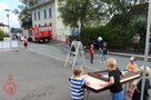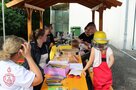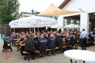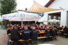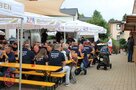 Bei der Übungsbesprechung bilanziert Einsatzleiter Johannes Hagen eine gelungene Übung, was wenig später Kreisbrandinspektor Rolf Hornfischer bestätigt. „Die Übung hat gezeigt, wie die Brandschützer professionelle Hilfe leisten und auch stets in der Lage sind, in Notfällen zu helfen“, betonte Hornfischer. Die Übung sei taktisch gut angelegt gewesen, es wurden Abschnitte gebildet. Unterm Strich stand ein „Löscherfolg“. Bürgermeister Bert Horn dankte den Brandschützern für ihren Einsatz. Vorsitzender Tobias Diezel lud zum Festbetrieb ein, listete eine umfangreiche Kulinarik auf und machte auf die Angebote für Kinder aufmerksam, ob nun Zielspritzen oder Kinderschminken nebst Zielwurf, um eine Tüte Gummibärchen zu erhaschen.
