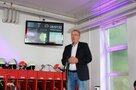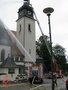 Moderator Michael Horn spricht von einem markanten Wahrzeichen Bad Stebens, erbaut in den Jahren 1908 bis 1910. 1250 Gläubigen bietet das im Jugendstil gebaute Gotteshaus Platz. „Es war mit der Ulmer Pauluskirche eine der beiden ersten Kirchen in Deutschland, bei denen in großem Maße Eisenbeton als Sichtbeton verwendet wurde.“ Horn informierte, dass es einen zehn Meter hohen hölzernen Dachstuhl gibt, die Dacheindeckung lose auf den Latten liegt und somit Absturzgefahr der Ziegel besteht – deswegen sollen die Zuschauer genügend Abstand zum Gebäude halten.