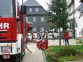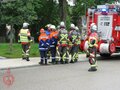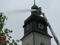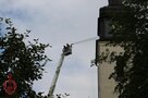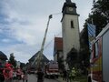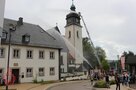 Schon vor dem offiziellen Start kommen zahlreiche Zaungäste zur Lutherkirche, um die Übung „Brand im Kirchturm nach Blitzschlag“ zu beobachten. Kommandant und Kreisbrandmeister Michael Horn kommentiert das Übungsszenario, sodass die Zuschauer immer genau wissen, warum und wieso der Einsatz so abläuft. Einsatzleiter ist Johannes Hagen, der die Übung auch ausgearbeitet hat.