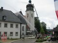 Mit dem Übungsszenario „Brand im Kirchturm der Lutherkirche“ eröffnen die Bad Stebener Brandschützer ihr zweitägiges Hallenfest.