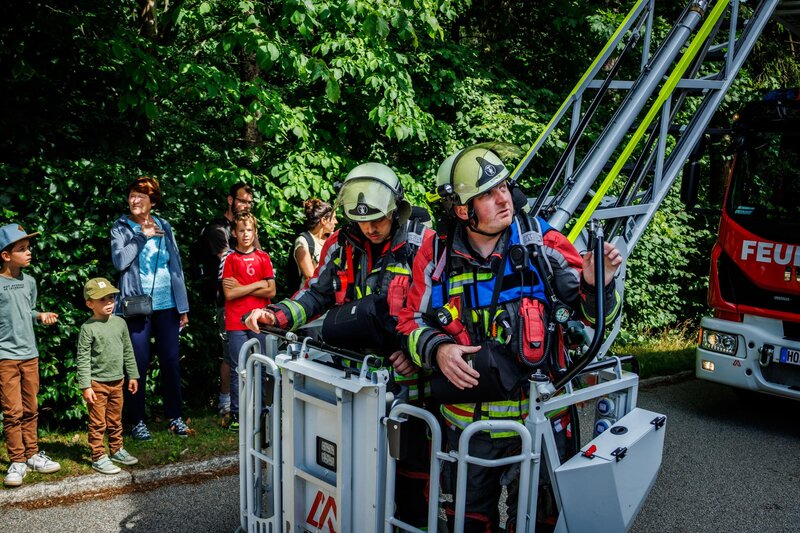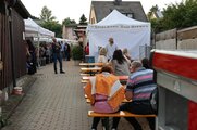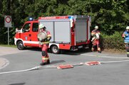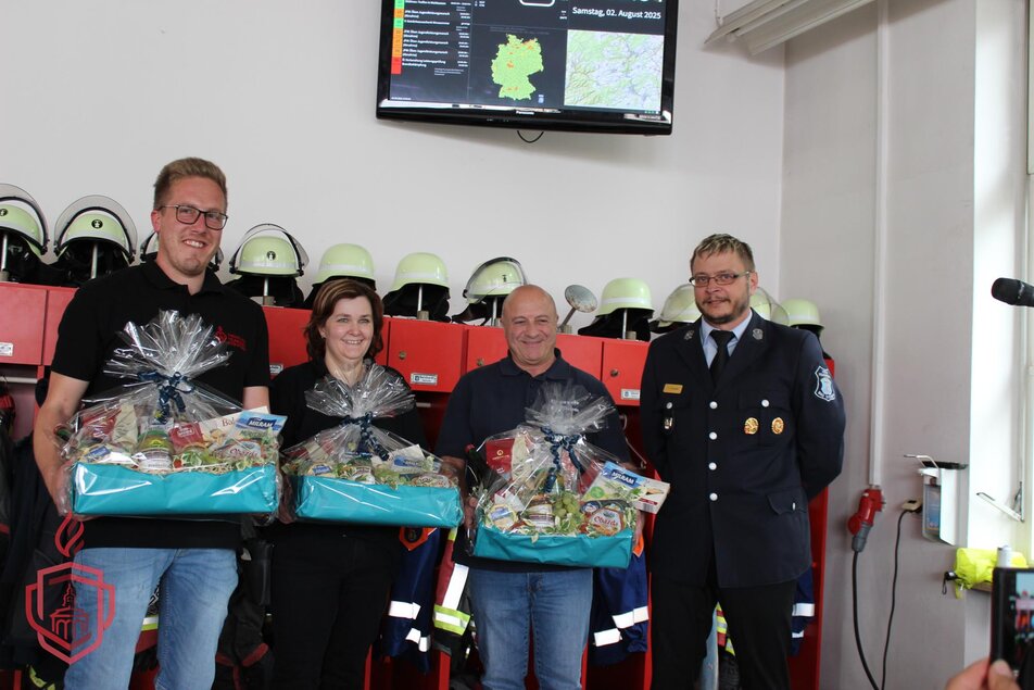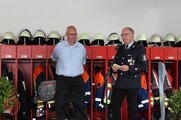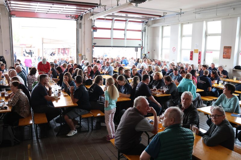 Bürgermeister Bert Horn betonte, die Übung habe gezeigt, dass sich die Menschen auf die ehrenamtlichen Einsatzkräfte der Feuerwehren verlassen können. „Es war ein eindrucksvolles Aufgebot, das verdient Respekt.“ Besonders begrüßte er die Abordnungen der Wehren Heiligensee und Tegel aus dem Partnerbezirk Berlin-Reinickendorf. Der Thierbacher Wehr dankte er für die Verkehrsabsicherung. Während der Übung war auf der Straße in Richtung Obersteben ein Wasserrohrbruch aufgetreten. Wasserwart Michael Diezel – aktiver Feuerwehrmann – leitete die notwendigen Maßnahmen.