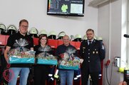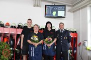 Auch die Arbeit in der Kinderfeuerwehr fand besondere Anerkennung: Kinderfeuerwehr-Leiter Hannes Schloth überreichte Silke Horn und Yvonne Munzert jeweils einen Blumenstrauß als Dankeschön für ihre tatkräftige Unterstützung.