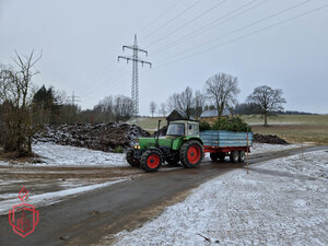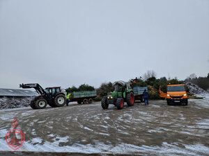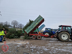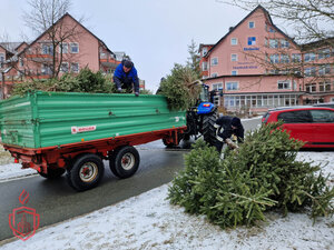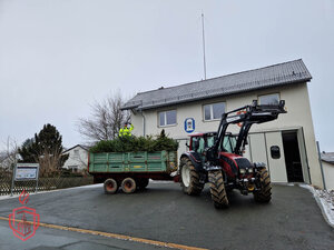 Mit drei Traktorgespannen von Matthias Diezel, Gerald Gebelein und Rüdiger Singer sowie dem Gemeindefahrzeug waren die Brandschützer am Samstagvormittag in Bad Steben und den Ortsteilen unterwegs, um die an den Straßenrändern abgestellten „weihnachtlichen Überreste“ einzusammeln. „Es sind gut 500 Bäume, die wir nun zur Kompostanlage Matthes bei Naila-Kalkofen fahren“, teilt Matthias Diezel mit. An einigen hing noch etwas Weihnachtsschmuck, den die Brandschützer zum eigenen Schmücken nutzen. Strohsterne oder kleine Figuren hefteten sie an ihre Einsatzjacken.