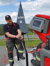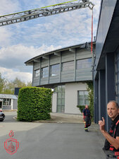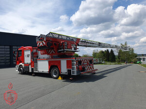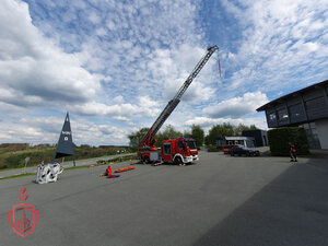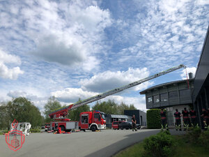 Auf unserem Dienstplan stand eine Aus- und Weiterbildung mit unserer Drehleiter. Mit den Drehleitermaschinisten und einigen Kameraden ging es nach Carlsgrün auf den Vorplatz der Firma Brühl. Unser Kamerad Philipp Brendel hatte einige Ausbildungsschwerpunkte ausgearbeitet, so wurden einige „Basics“ wie der richtige Aufstellort, die Abstützung und die möglichen Einsatzgrenzen der Drehleiter besprochen und praktisch beübt.