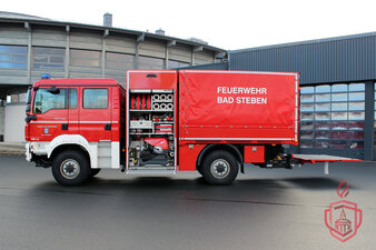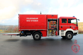 Der Gerätewagen-Logistik mit dem Funkrufnamen "Florian Bad Steben 56/1" ist ein wirklicher Lastenesel. Mit seiner Ladefläche und Ladebordwand transportiert er unter anderem dauerhaft 2000 Meter B-Schlauch in vier Rollcontainern. Das ist laut Norm auch sein Haupteinsatzgebiet, das Verlegen von langen Schlauchleitungen bei Brandeinsätzen. Natürlich macht die Ladefläche ihn zu einem echten Allrounder. So werden weitere Rollcontainer, mit der Beladung für Wasserschäden oder die Ölschadenbeladung damit transportiert. Aber auch Sandsäcke oder verschmutzte Ausrüstung können transportiert werden.
