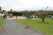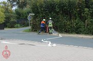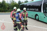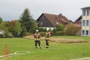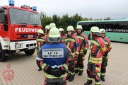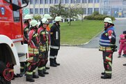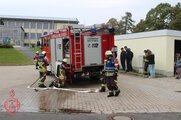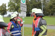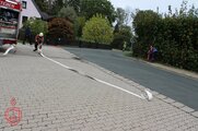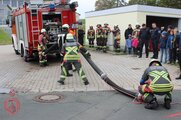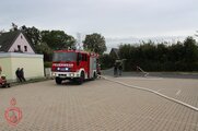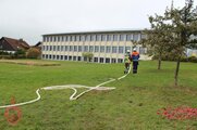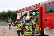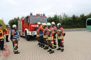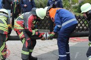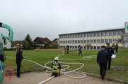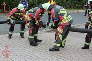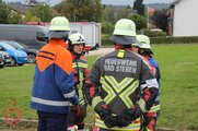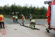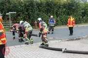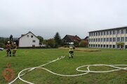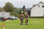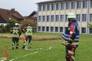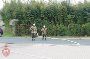 Zwei Gruppen stellten sich der Leistungsprüfung „Die Gruppe im Löscheinsatz“. Hierbei wird der Brand eines Nebengebäudes angenommen, bei dem keine Menschen oder Tiere in Gefahr sind. Nach einer kurzen Einweisung durch den Gruppenführer beginnt die Arbeit für die Gruppe. Es muss eine Wasserversorgung von einem Überflurhydranten zum Feuerwehrfahrzeug aufgebaut werden, eine Verkehrsabsicherung, als Schutz gegen den fließenden Verkehr wird errichtet und ein Verteiler wird vor dem brennenden Nebengebäude gesetzt. Anschließend nehmen die drei Feuerwehr-Trupps je ein C-Rohr zur Brandbekämpfung vor.