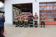 Bei der anschließenden Übergabe der Abzeichen gab es für die Kameraden Jörg und Tobias eine besondere Auszeichnung. Sie absolvierten die sechste und somit letzte Stufe der Leistungsprüfung Wasser und erhielten dafür das Abzeichen in Gold-Rot.