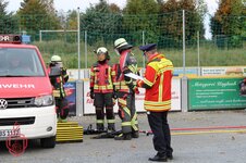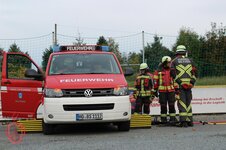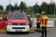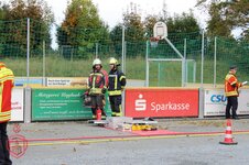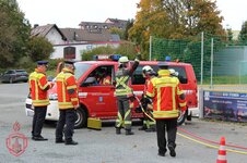 Mit Argusaugen überwachten das Schiedsrichterteam von Kreisbrandinspektor Rolf Hornfischer, Kreisbrandmeister Michael Horn und Prüfer Jochen Linz die Brandschützer den vorschriftsmäßigen Ablauf des Bereitstellungseinsatz zur Befreiung einer eingeklemmten Person am angenommenen Unfallfahrzeug. Verbunden mit dem Aufbau einer Verkehrsabsicherung, der Sicherstellung des Brandschutzes und Ausleuchtung der Einsatzstelle musste das Unfallfahrzeug sicher unterbaut, der Patient betreut und sämtliches für den Hilfeleistungseinsatz benötigtes Gerät zügig an Ort und Stelle gebracht werden. Auch auf eine korrekte Befehlsgebung untereinander und ein fehlerfreies Arbeiten achteten die Schiedsrichter, von denen Kreisbrandinspektor Hornfischer als Zeitnehmer agierte.