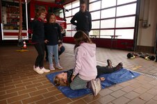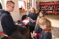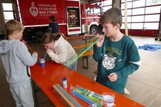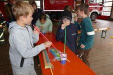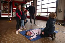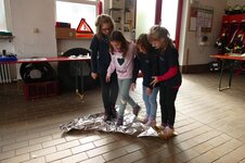 Zwei Kinder legen die Stufe 1 ab, acht die Stufe 2 und fünf die Stufe 3. Während die Prüfung einer Stufe in der Fahrzeughalle des Feuerwehrgerätehauses läuft, werden die anderen Kinder im Unterrichtsraum betreut, so dass ein jeder konzentriert arbeiten kann. Dass die kindgerechte Ausbildung funktioniert, zeigten die Mädchen und Jungen mit Bravour, ob nun beim Absetzen eines Notrufes, bei stabiler Seitenlage oder auch beim „Löschangriff“. Die zukünftigen Brandschützer können mit D-Schlauch und Strahlrohr sicher umgehen und spritzen gezielt einen Tennisball durch die Saugleitung. Auch wussten die „Stemmer Löschlöwen“ Bescheid, welche Aufgaben die Feuerwehr hat und ordneten diese anhand eines Memorys passend zu, auch was zur persönlichen Schutzausrüstung gehört, ist dem Feuerwehrnachwuchs bekannt. Als Teamaufgabe meisterten sie „Rettungsdecke wenden“ und „Wassertransport“.