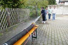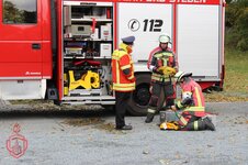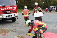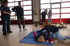 Jeweils im Zweiertrupp galt es nach der Auslosung von Wasser-, Angriffs- und Schlauchtrupp nebst Melder mussten die Teilnehmer einzelne Gerätschaften erklären und vorführen, ob nun die Inbetriebnahme einer Motortauchpumpe, Bedienung des pneumatischen Hebekissensystems oder des hydraulischen Rettungssatzes. Auf medizinischer Ebene war unter anderem die Verwendung einer Krankentrage gefragt.